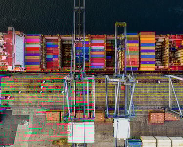 Proses bongkar muat barang dengan peralatan modern dan profesional.